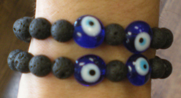 Bracelets hand made from protective Evil Eye beads and black Lava beads.
